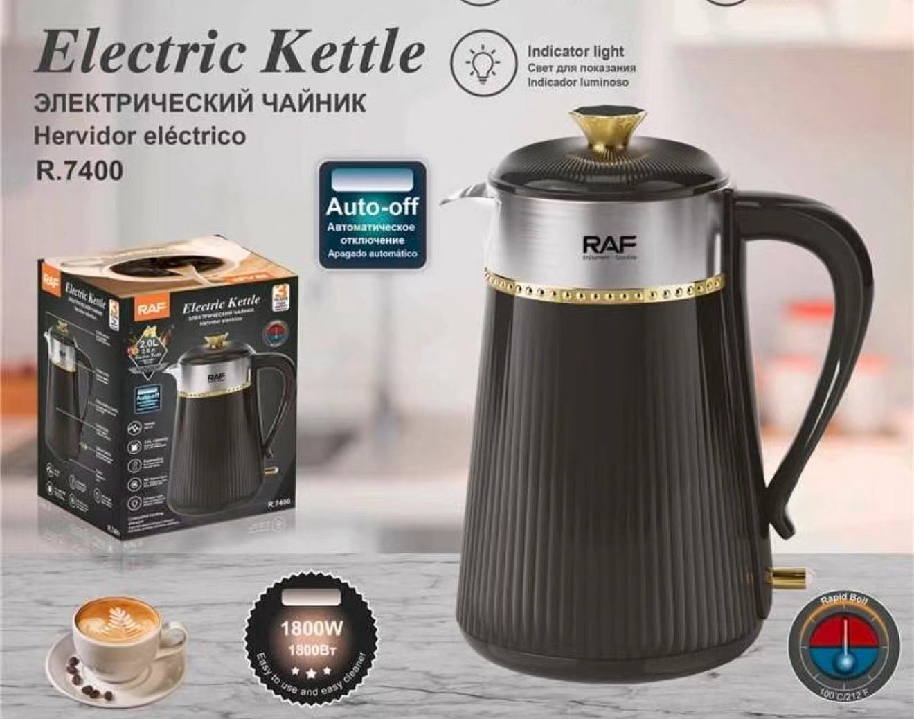 Built with both functionality and aesthetics in mind, the electric kettle features a sleek, modern design that complements any kitchen décor. Its ergonomic handle ensures a comfortable grip while pouring, and the lightweight body makes it easy to maneuver. The kettle includes a removable lid for effortless refilling and cleaning, while the water-level indicator ensures precision every step of the way. The automatic shut-off and boil-dry protection bring added safety, making it a reliable choice for households of all sizes.